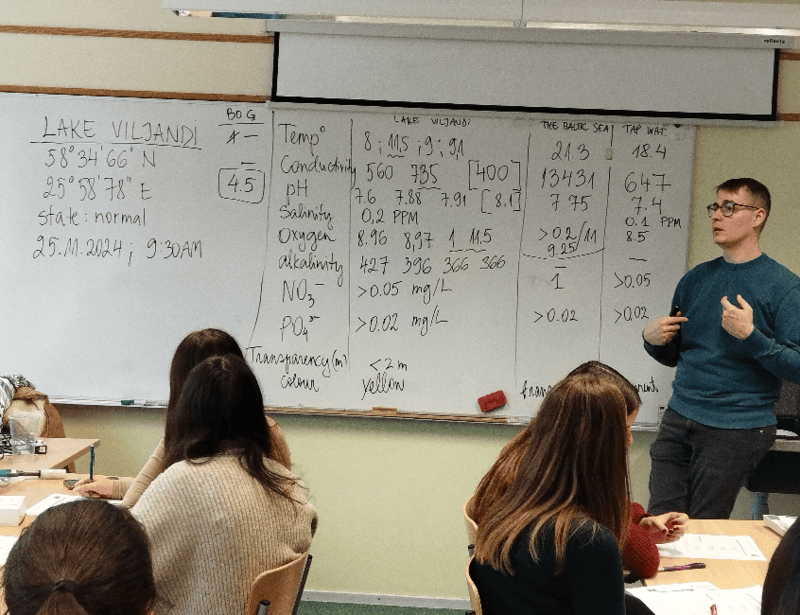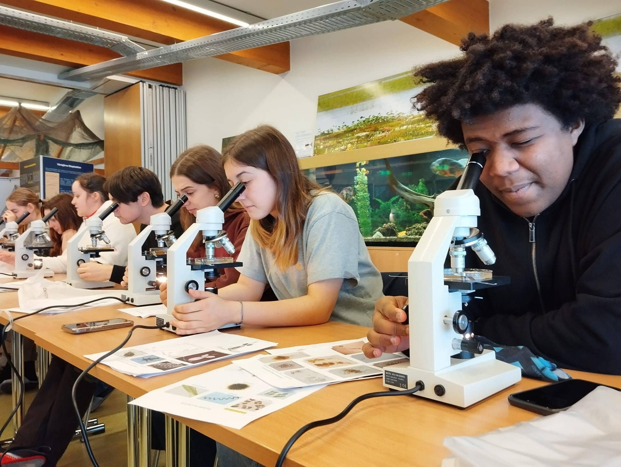 Après un cours sur le plancton, les élèves ont prélevé du plancton dans le lac de Vortsjarv et ils l’ont ensuite analysé.