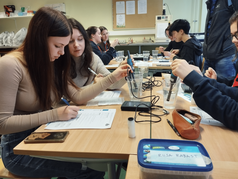 Les estoniens nous ont initiés au Programme GLOBE. Soutenu par la NASA, ce programme international sensibilise les jeunes à la protection de l’environnement et contribue à améliorer les connaissances scientifiques sur la Terre. Les élèves ont analysé 4 échantillons d’eau : eau du lac de Viljandi, eau de la mer baltique, eau des tourbières de la région, et eau du robinet. Ils ont réalisé des mesures sur la conductivité de l’eau, le PH, la salinité, la teneur en nitrates et en phosphates,… . Ces relevés s’ajouteront aux données collectées dans le monde entier par des élèves, afin d’enrichir la base de données du programme GLOBE sur la planète.